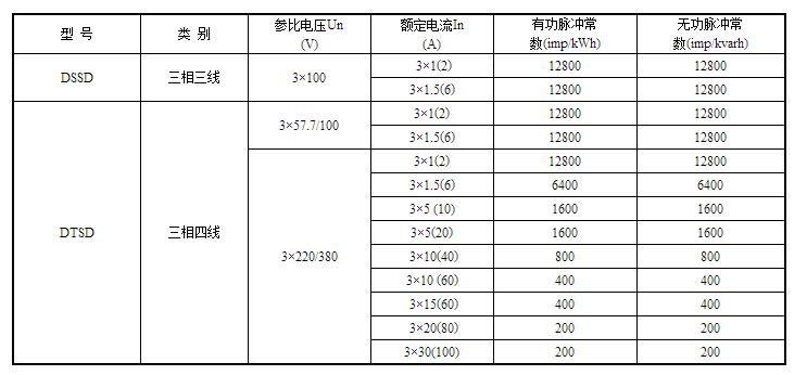 l 規(guī)格型號與脈沖常數(shù)對照表